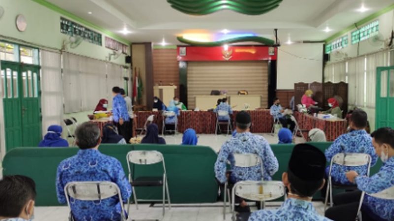 Kementerian Agama (Kemenag) Kota Banjarmasin kembali melaksanakan vaksinasi yang kedua bagi Aparatur Sipil Negara (ASN) di lingkungan Kantor di Aula Bararakatan Kemenag Banjarmasin.