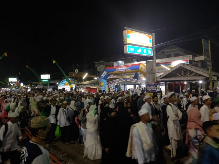 Ini juga hampir tidak ada tempat kosong di Q Mall. Jemaah haul menghampar sajadah untuk dijadikan shaf salat. “Atrium Q Mall penuh dari lantai satu sampai lantai 3,” ujar Fikri.