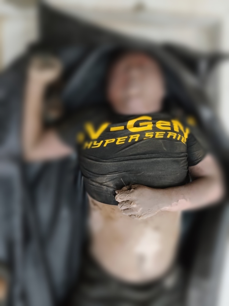 Saat penemuan, di tubuh korban masih lengkap menggenakan baju dan celana warna hitam.