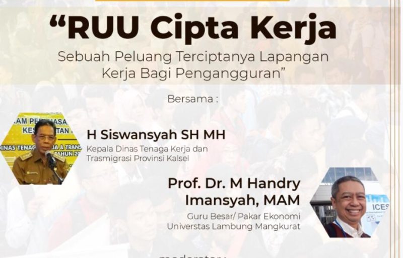 “RUU Cipta Kerja bukan hanya untungkan pengusaha, tapi buruh dan seluruh rakyat Indonesia juga diuntungkan,” ujar Handry dalam acara diskusi media yang digelar PWI Kalimantan Selatan dengan tema RUU Cipta Kerja : Sebuah Peluang Terciptanya Lapangan Kerja Bagi Pengangguran, Rabu (15/7/2020).