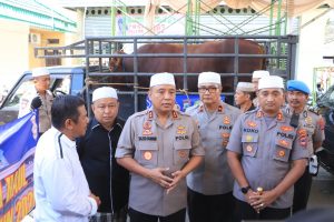 Selain menyerahkan tiga ekor sapi, kedatangan kapolda juga sekaligus meninjau persiapan keamanan di sekitar Musholla Ar-Raudah.