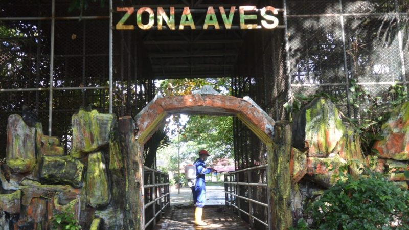 SuarIndonesia – Dinas Ketahanan Pangan, Peternakan, dan Perikanan, (DKP3) Banjarmasin, melakukan penyemprotan desinfektan di Taman Satwa, Jalan Jahri Saleh, Banjarmasin Utara, Rabu (18/3/2020).