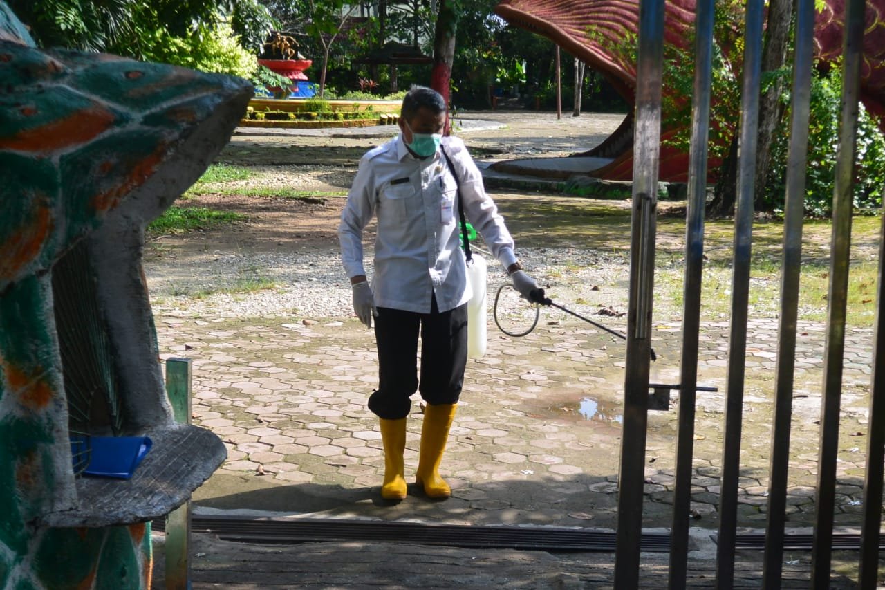 Penyemprotan ini dilakukan berbarengan dengan jadwal penutupan tempat wahana tersebut dari kunjungan hingga masa inkubasi 14 hari ke depan.