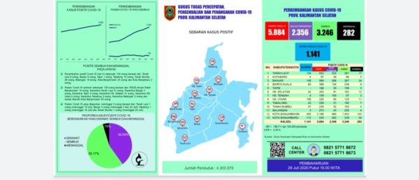 Secara keseluruhan kasus covid-19 di Kalsel berjumlah 5.884 terdiri dari 2.356 dalam perawatan, 3.246 sembuh, dan 282 meninggal.(RW)