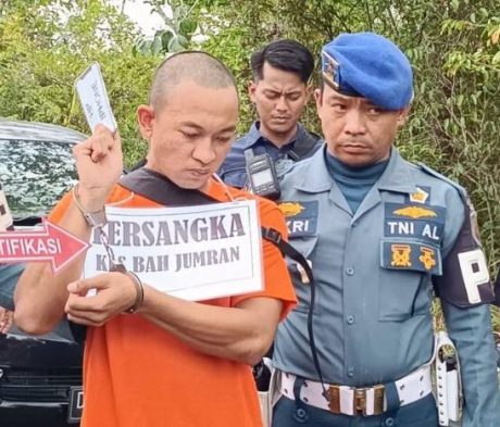 SuarIndonesia – Jumran dengan tangan diborgol digiring anggota Detasemen Polisi Militer (Denpom) Lanal Banjarmasin ke kawasan Gunung Kupang, Banjarbaru, Kalsel, Sabtu (5/4/2025).