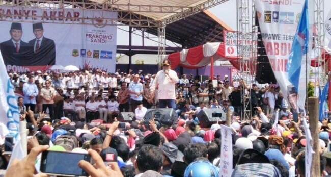 “Saya tidak akan mencari keuntungan pribadi, cita cita saya membentuk Pemerintah yang anti korupsi, yang tidak ada koruptornya,” ujar Prabowo di hadapan ribuan pendukungnya di Taman Lokasana, Kabupaten Ciamis, Sabtu (6/4/2019).