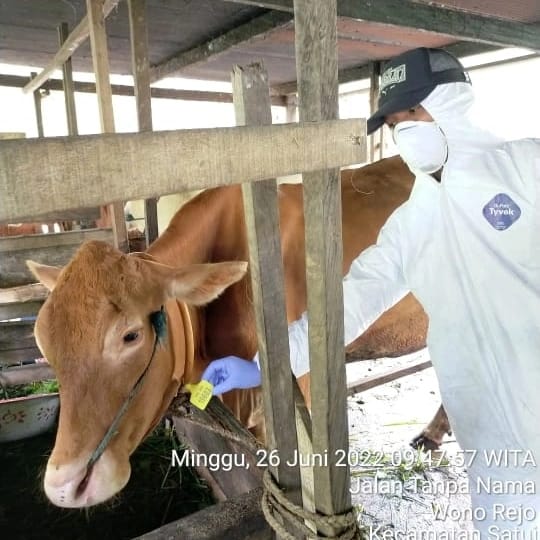 “Vaksin PMK bantuan Kementerian Pertanian RI tersebut telah diterima pada tanggal 23 Juni 2022 dan telah didistribusikan pada tanggal 24 Juni 2022 ke 12 Kabupaten/ Kota yang didahului dengan rapat koordinasi persiapan pelaksanaan vaksinasisecara online yang.