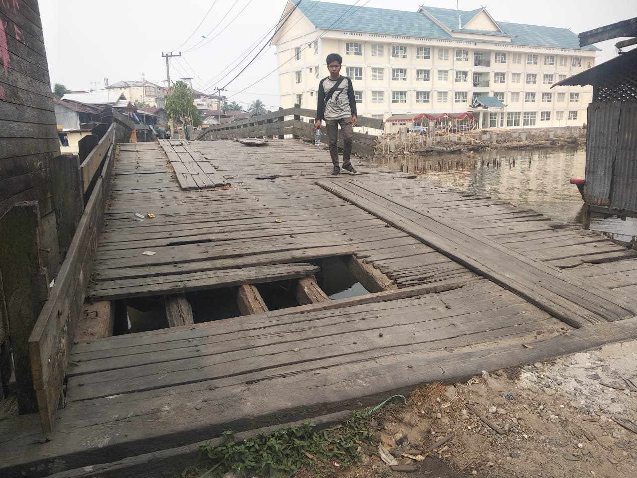 Suarindonesia – Terhitung 3 tahun belakangan ini jembatan Teluk Kelayan Kecamatan Banjarmasin Selatan samping Rusunawa dan Pasar Beras kini kondisi jembatan mengalami kerusakan dan sangat tidak terawat.