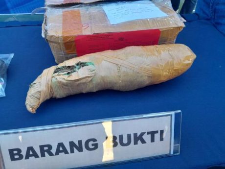 Paket tersebut diketahui berisi ganja kering seberat 0,5005 kilogram yang dibungkus dalam kardus dan dilakban kuning.