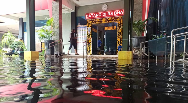 SuarIndonesia – Tak hanya pemukiman dan akses jalan, terjangan banjir rupanya juga merendam Rumah Sakit (RS) Bhayangkara yang berada di Jalan A Yani Km 3,5, Kota Banjarmasin.