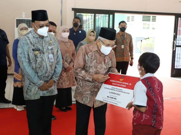 SuarIndonesia – Wakil Presiden RI, KH. Ma’ruf Amin, menyerahkan bantuan Asistensi Rehabilitasi Sosial (Atensi) dari Kementerian Sosial (Kemensos) dengan total nominal Rp 1.972.800.000.