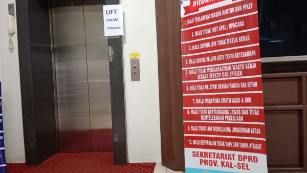 SuarIndonesia – Sudah beberapa bulan terakhir, dua buah lift di DPRD Kalsel “terlantar” tidak dapat digunakan.
