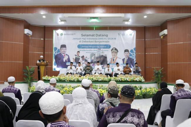Pada acara penerimaan kedatangan jemaah haji Kloter 19 Debarkasi Banjarmasin di Aula Jeddah Asrama Haji Debarkasi Banjarmasin dikutif dari laman Kemenag Kalsel, Senin (22/7/2024).