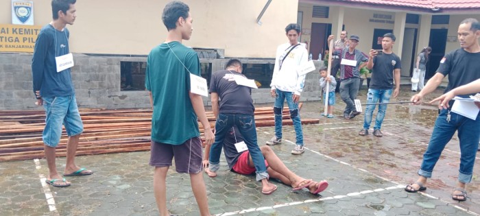 Mereka memperagakan sebanyak 18 adegan. dari peristiwa, yang terjadi pada Jum’at (15/12/2023), sekitar pukul 22.05 WITA.
