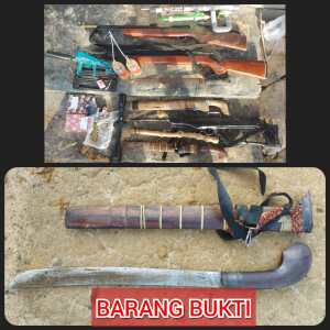 Tim sita sepucuk senjata air softgun modifikasi, satu senjata api rakitan laras panjang, enam butir peluru kaliber 5,56 mm, tiga butir peluru kaliber 9 mm dan lainnya.