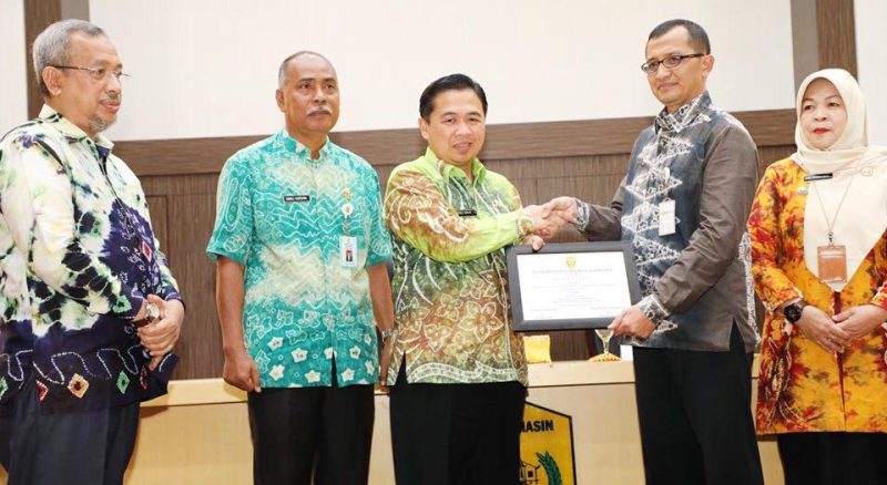 Penyerahan penghargaan tersebut dilakukan Walikota Banjarmasin H Ibnu Sina, saat kegiatan Gelar Pengawasan di Balai Kota Banjarmasin H Ibnu Sina.