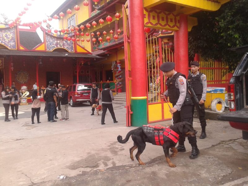 Suarindonesia – Sejumlah anggota dari Tim K-9 Dit Samapta Polda Kalsel, melakukan penyisiran pada dua tempat Klenteng di Banjarmasin, Senin (4/2) sore.
