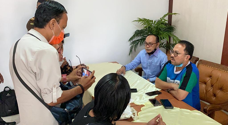Pangeran Khairul Saleh (paling kanan) dan Supriyansah (kedua dari kanan) saat diwawancarai awak media di Bangka Belitung (Babel).(Foto/Ist)