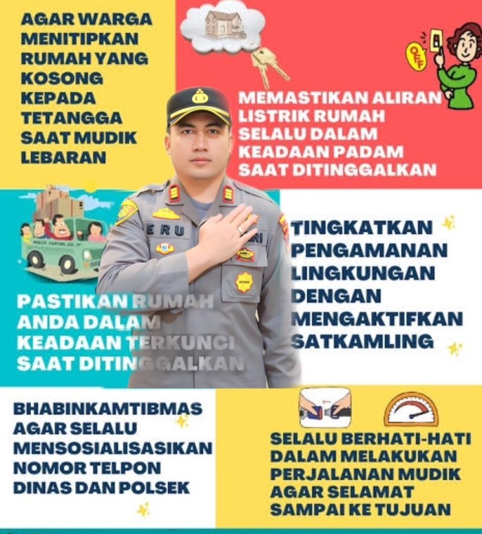 “Bhabinkamtibmas juga kita minta untuk mengingatkan warga yang ingin mudik untuk memastikan listrik rumahnya dałam keadaan padam saat ditinggalkan,” katanya