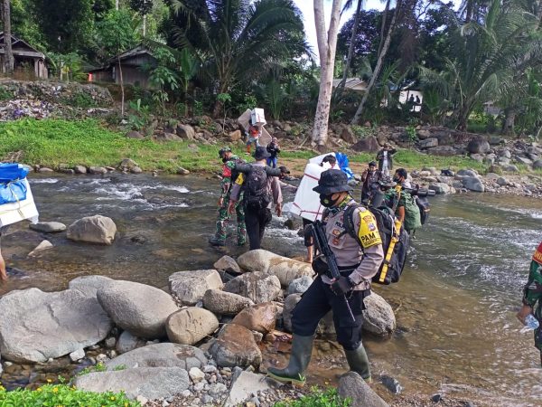 Terutama menggunakan mobil atau sepeda motor, dan untuk pendistribusian logistik Pilkada, harus susur sungai dan tapaki pegunungan selama dua hari satu malam dimulai, MInggu (6/12/2020).