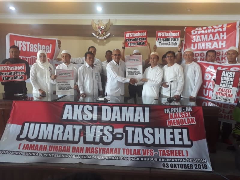 Massa mendesak pola VFS-Tasheel dihentikan karena memberatkan bagi jemaah umrah dan haji asal Kalsel. Menurut Saridi, sistem biometrik menjadi kendala bagi masyarakat daerah terpencil karena biaya mengurus umrah menjadi makin besar. Jadi, sistem ini dinilai bentuk kezoliman.