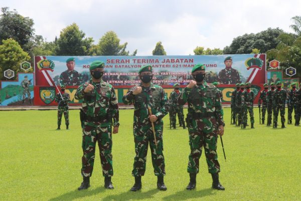 SuarIndonesia -Tongkat estafet kepemimpinan Danyonif (Komandan Batalyon Infanteri Yonif) 621/Manuntung diserahkan.