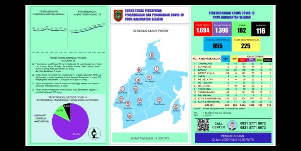 Jumlah kasus Covid 19 Kalsel sebanyak 1.694 terkonfirmasi positif.