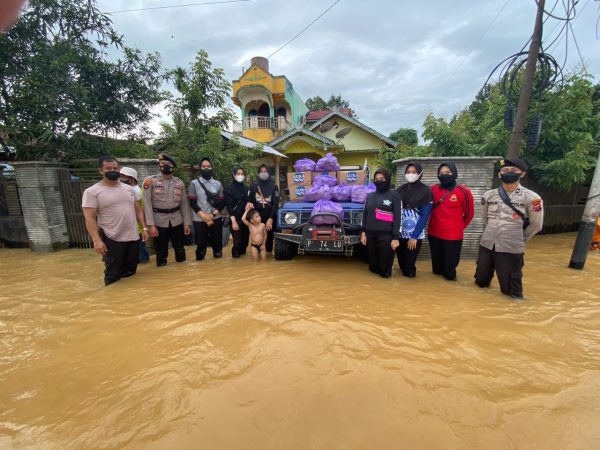 SuarIndonesia – Turun langsung Kapolres HST, AKBP Sigit Hariyadi didampingi Ketua Bhayangkari menyerahkan langsung bansos (bantuan sosial) dan makakan siap saji kepada para pengungsi dan korban banjir lainnya.