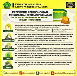 Adapun mekanisme jemaah haji yang mengajukan permohonan pengembalian setoran pelunasan Bipih secara tertulis kepada Kepala Kankemenag Kota/Kabupaten dengan menyertakan persyaratan.