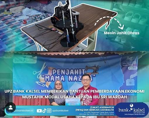 Melihat kondisi tersebut, UPZ Bank Kalsel melakukan survei dan memilih Sri Wardah, yang perlu dibantu untuk modal usaha dalam membeli mesin obras.