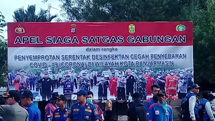 Penyemprotan dilaksanakan Polresta Banjarmasin, Kodim 1007 dan instansi terkait diantaranya , BPK, Sat Pol PP, Dishub dan PDAM Bandarmasih.