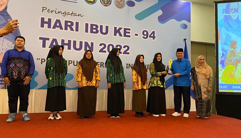 Pada Puncak Peringatan Hari Ibu tahun 2022 ini, diserahkan penghargaan peserta lomba menulis dengan judul “Surga Tertelak di Kaki Ibu” pada para pemenangan yang masih usia remaja pun diberikan uang pembinaan dan tropi dari Pemerintah Prvisi de Kalsel.
