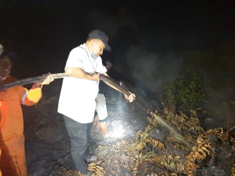 Kapolda yang melakukan pengecekan titik api dan penanggulangan pemadaman Karhutla pada pukul 01.00 wita melihat terjadinya kebakaran lahan gambut rawa di Jalan Kurnia Ujung Km.23, Landasan Ulin, Kota Banjarbaru.