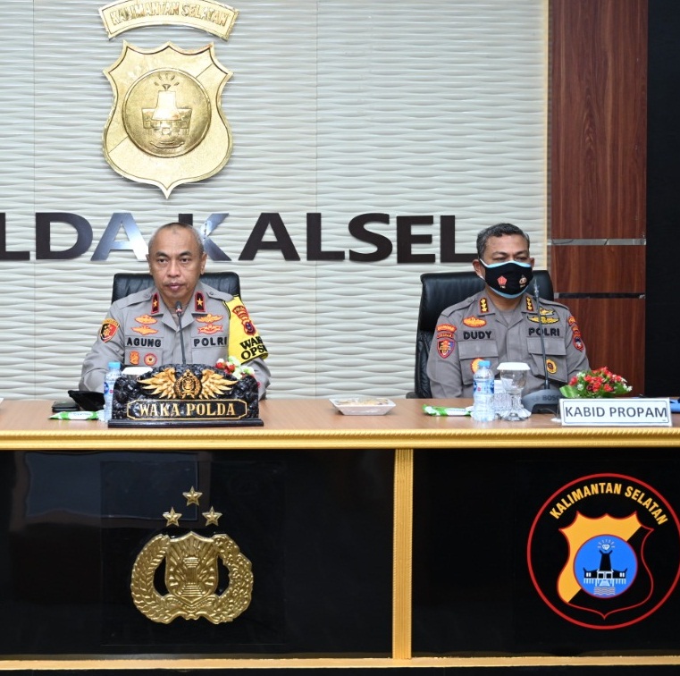 SuarIndonesia – Wakil Kepala Kepolisian Daerah Kalimantan Selatan (Wakapolda Kalsel) Brigjen Pol. Mohamad Agung Budijono, S.I.K., M.Si, memberikan arahan kepada seluruh personil Bidang Profesi dan Pengamanan (Propam) Polda Kalsel, Senin (2/11/2020).