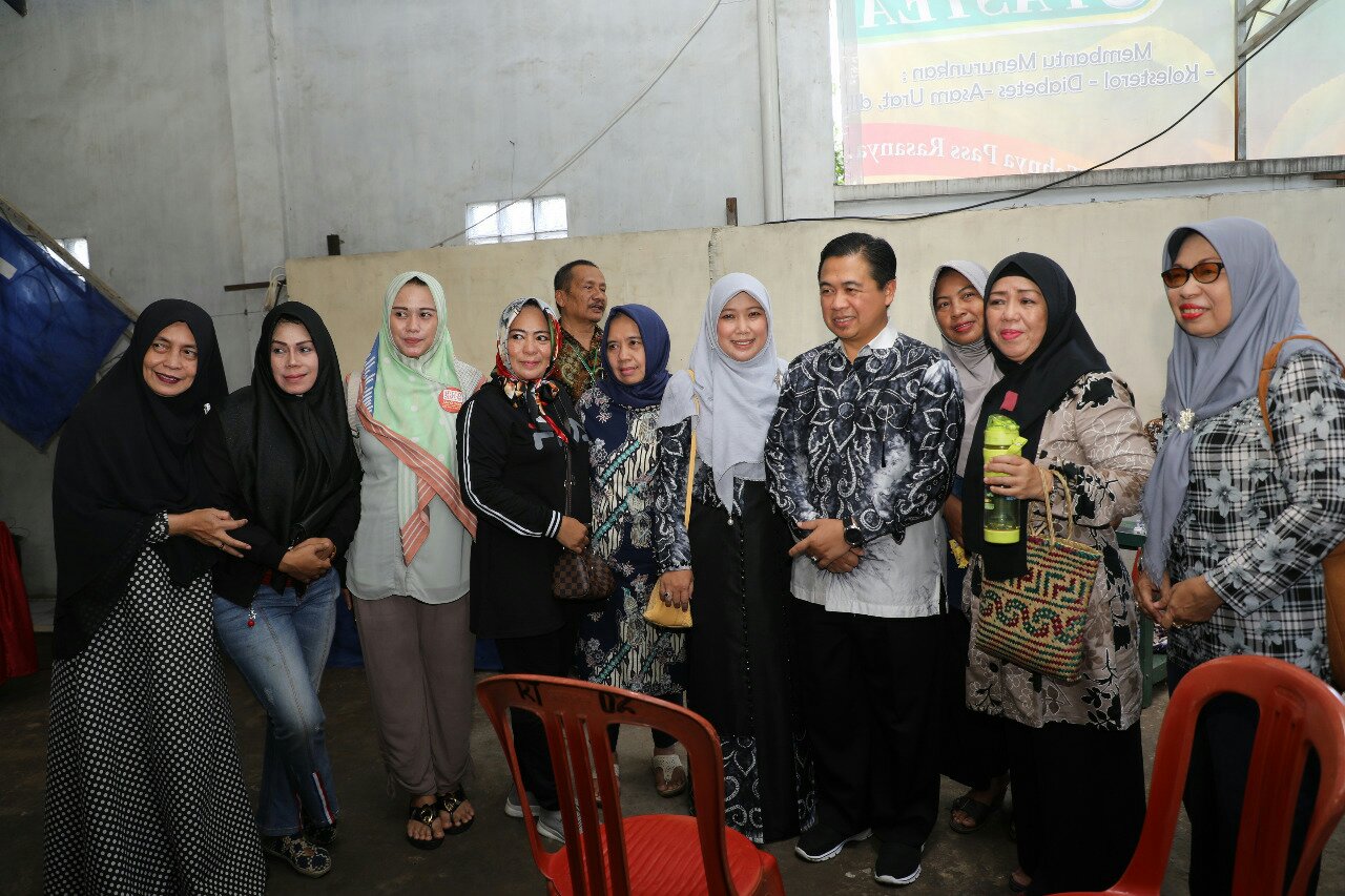Mengenakan setelan busana sasirangan bermotif bunga warna hitam keabu-abuan, Walikota Ibnu Sina dan istrinya, Siti Wasilah menunjukkan kekompakannya kepada para pemilih dan petugas KPPS di tempat itu.