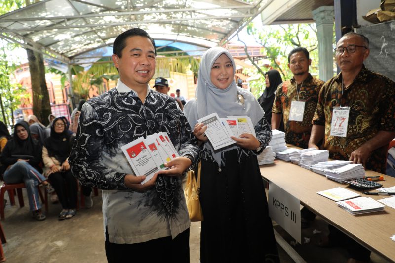 Suarindonesia – Walikota Banjarmasin H Ibnu Sina dan istrinya Ketua Tim Penggerak PKK Kota Banjarmasin Hj Siti Wasilah menyalurkan hak pilihnya di TPS 02, Jalan Banjar Indah Permai RT 02 RW 01, Kelurahan Pemurus Dalam dengan DPT yang terdata 285 pemilih.