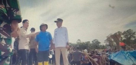 Wapres menyerahkan bantuan bagi warga yang terdampak musibah. Kemudian kembali terbang ke lokasi banjir di Kecamatan Sungai Tabuk Kabuopaten Banjar.