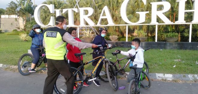 SuarIndonesia – Warga bersepeda tetap menjadi sasaran dan perhatian anggota Polantas (Polisi lalu Lintas) yang tengah berpatroli, Minggu (2/8/2020).
