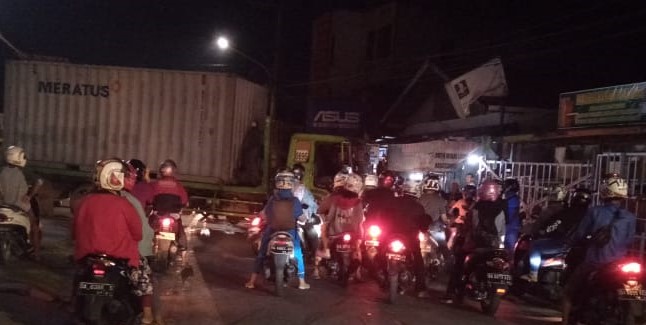 Kertika itu para pengendara baik naik sepeda motor maupun mobil, yang hendak menuju naik arah Jembatan Pasar Lama, tak bisa maju.